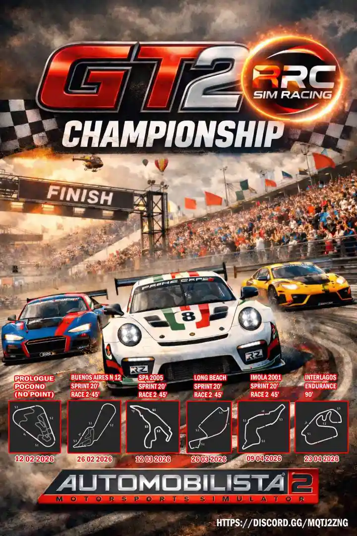 Join REAL RACING CLUB SIM RACING ITALIA in Automobilista 2 from 9:15 PM UTC on Thursday, February 12, 2026 with GT2_05 at Pocono Oval for some great racing!